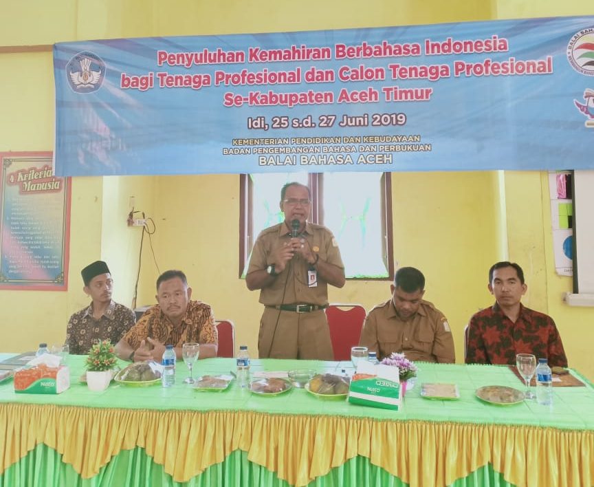 Balai Bahasa Aceh melaksanakan Penyuluhan Bahasa Indonesia bagi Tenaga Profesional dan Calon Tenaga Profesional di Kabupaten Aceh Timur.
