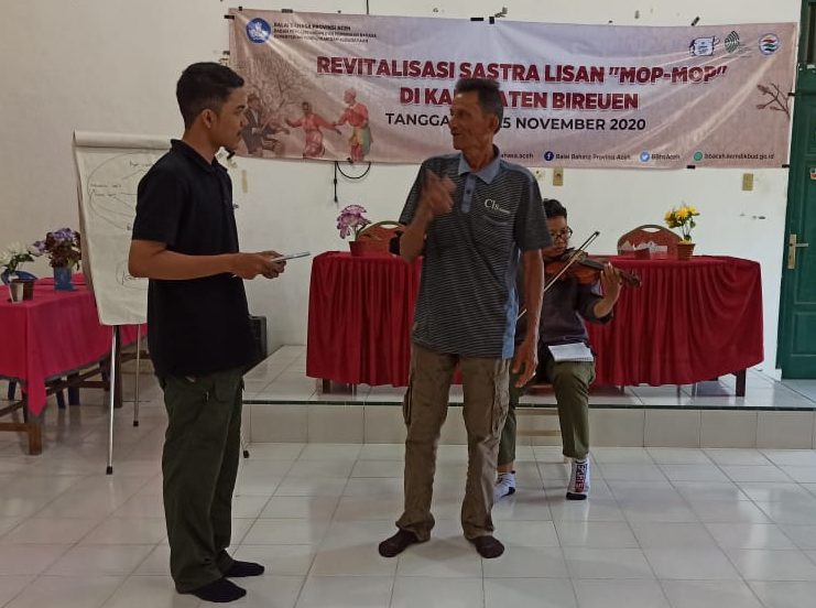 “Saat ini, mop-mop mengalami krisis. Hanya dua grup di Aceh Utara dengan para pemain yang sudah berusia lanjut yang masih bertahan. Meskipun beberapa penelitian dan upaya konservasi telah dilakukan, namun hasilnya belum tampak. Atas dasar itu, kita memutuskan untuk melakukan revitalisasi”. Demikian keterangan Cut Ida Agustina, pengkaji kebahasaan dan kesastraan Balai Bahasa Provinsi Aceh yang bertindak selaku ketua pelaksana kepada redaksi (Kamis, 26/11/2020).
