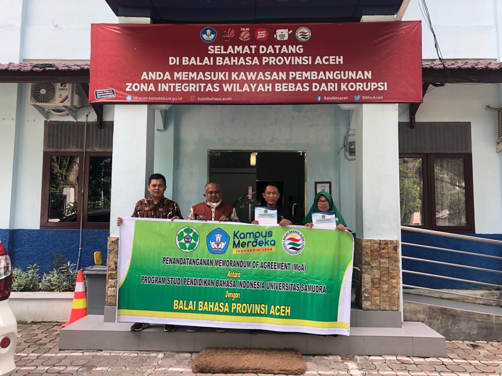 Banda Aceh – Prodi Pendidikan Bahasa Indonesia (PBI) FKIP Universitas Samudra (Unsam) melakukan kunjungan ke Balai Bahasa Provinsi Aceh untuk menjalin kerja sama bidang kebahasaan dan kesastraan, khususnya untuk penerapan Uji Kemahiran Berbahasa Indonesia (UKBI) bagi mahasiswa, Jumat (3/12/2021). TIM PBI FKIP Unsam yang diwakili oleh Koordinator Prodi Pendidikan Bahasa Indonesia, Joko Hariadi, S.Pd., M.Pd. diterima oleh Kasubbag. TU Balai Bahasa Aceh, Agus Priatna, S.E.,Ak.,M.M., dan Koordinator UKBI Provinsi Aceh, Yanti Zulita, S.S., M.Pd.