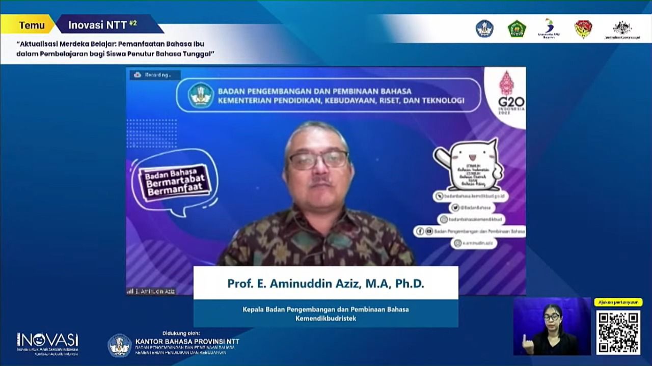 Kupang, 10 Maret 2022 — Kementerian Pendidikan, Kebudayaan, Riset, dan Teknologi (Kemendikbudristek) bekerja sama dengan INOVASI, Dinas Pendidikan dan Kebudayaan Provinsi NTT, Kantor Bahasa Provinsi NTT, dan Kedutaan Besar Australia, menyelenggarakan acara Temu Inovasi NTT#2 bertajuk “Aktualisasi Merdeka Belajar: Pemanfaatan Bahasa Ibu dalam Pembelajaran bagi Siswa Penutur Bahasa Tunggal”. Paradigma baru yang diusung Merdeka Belajar memungkinkan terciptanya kebebasan berinovasi. Merdeka Belajar memberikan kebebasan bagi para guru, siswa, maupun sekolah untuk berinovasi sesuai dengan konteks lokal, termasuk memastikan semua anak belajar dan dapat mengakses pembelajaran dalam bahasa yang mereka pahami, dalam hal ini Bahasa Ibu.