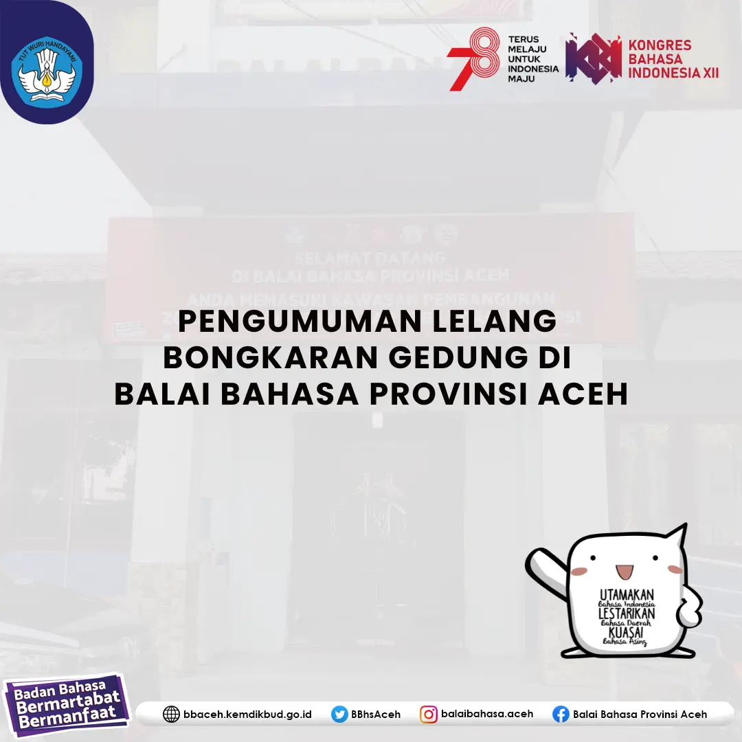 Asalamualaikum Rakan Bahasa berikut pengumuman lelang paket Bongkaran Gedung di Balai Bahasa Provinsi Aceh per tanggal 5 September 2023