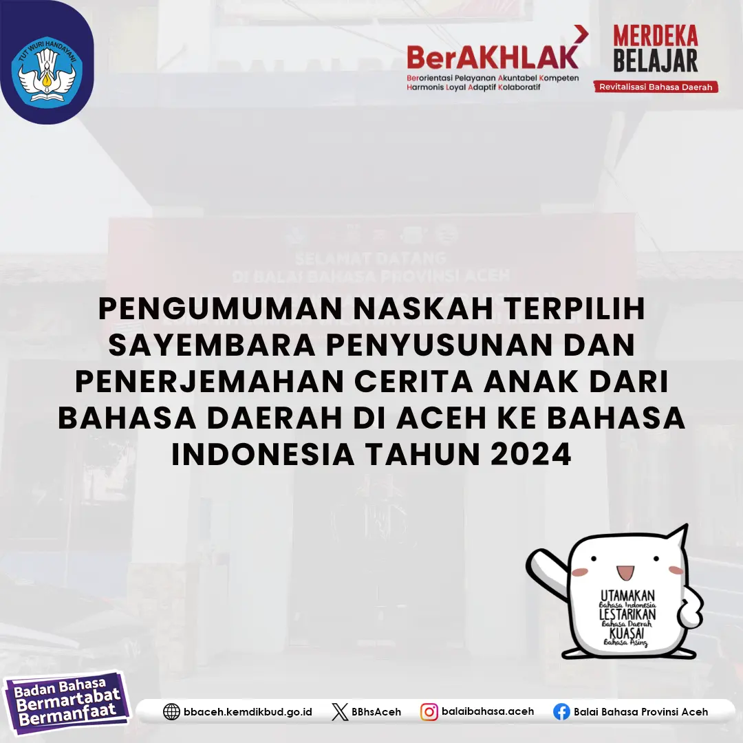 Asalamualaikum Rakan. Berikut ini adalah naskah terpilih sayembara penyusunan dan penerjemahan cerita anak dari bahasa daerah ke bahasa Indonesia tahun 2024