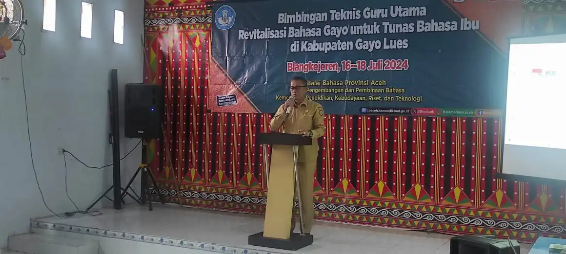 Balai Bahasa Provinsi Aceh Kembali mengadakan kegiatan Bimbingan Teknis Guru Utama Revitalisasi Bahasa Daerah Gayo untuk Tunas Bahasa Ibu yang berlangsung selama tiga hari 16–18 Juli 2024. Kegiatan ini diadakan di Aula Hotel Tawar Dingin Blangkejeren, Kabupaten Gayo Lues.