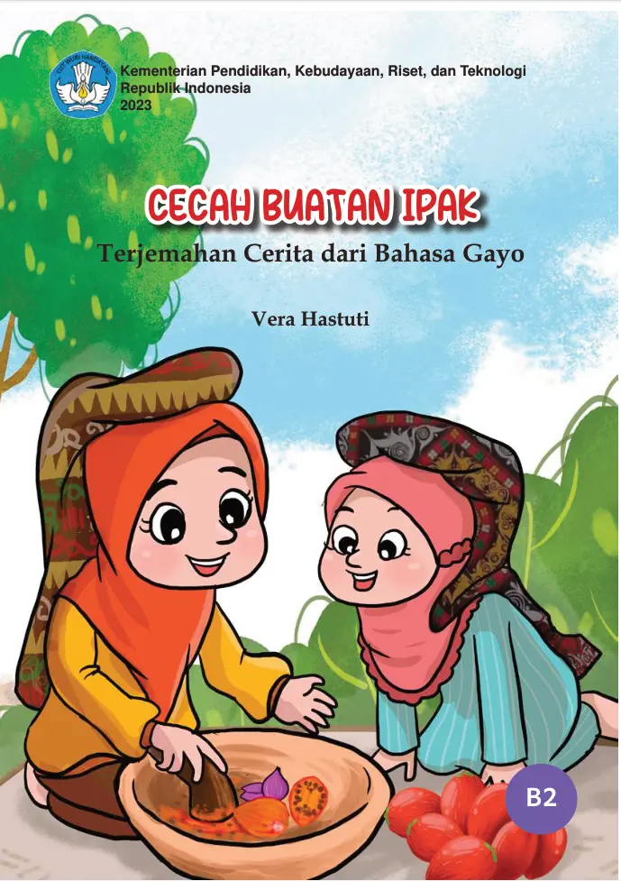 Cecah Buatan Ipak Cecah Buatan IpakJudul: Cecah Buatan IpakPenulis: Vera HastutiJumlah halaman: ii + 28 hlmISBN: 978-623-112-092-2 Sinopsis: Buku ini merupakan buku cerita anak dua bahasa (Indonesia-Gayo) yang menceritakan tentang Cecah Gayo.Kunjungi melalui tautan berikut!